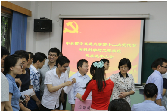 2015年5月25日下午18点,3003新葡的京集团召开了学校第十二次党代表选举大会,3003新葡的京集团党委书记潘希德主持了会议,参加会议的有全体教工党员及学生党支部书记共71人。