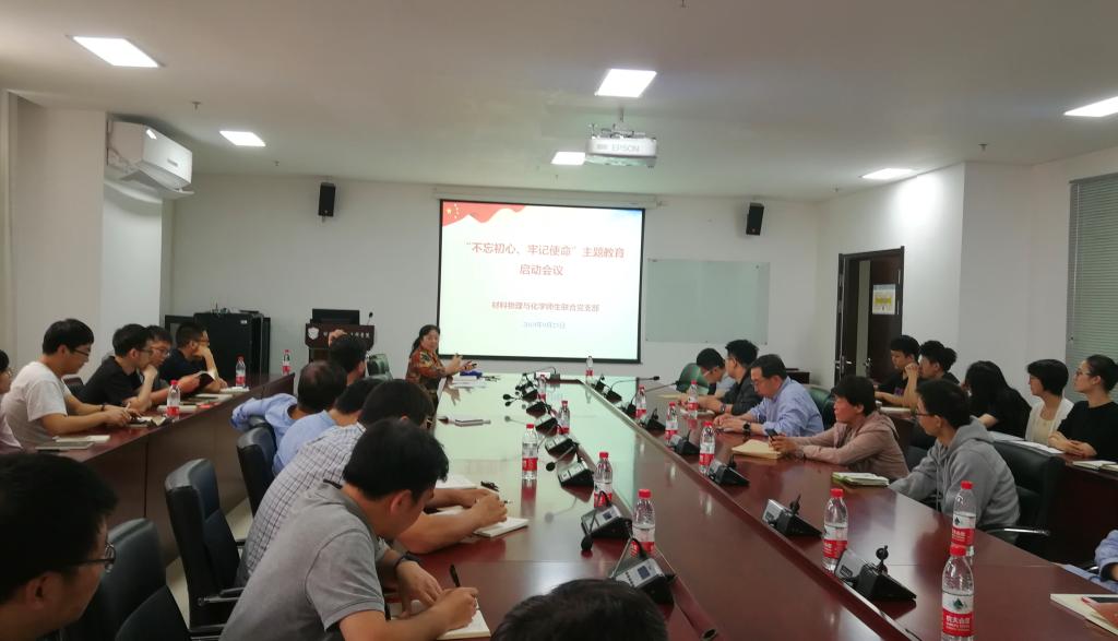 9月26日下午,3003新葡的京集团材料物理与化学师生联合党支部在学院第三会议室召开了“不忘初心、牢记使命”主题教育启动支部扩大会议,党支部书记宋月贤主持动员大会,材料物理与化学系全体老师和材料物理与化学师生联合党支部全体党员参加。