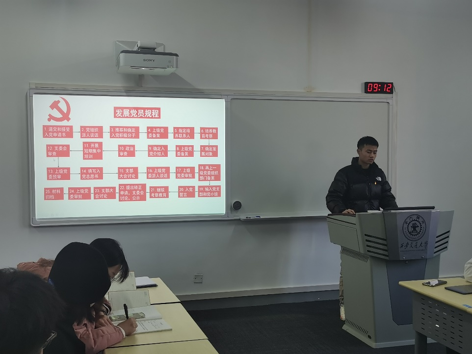接下来由刘凯为入党积极分子介绍了入党的流程步骤以及支部制定的发展细则。