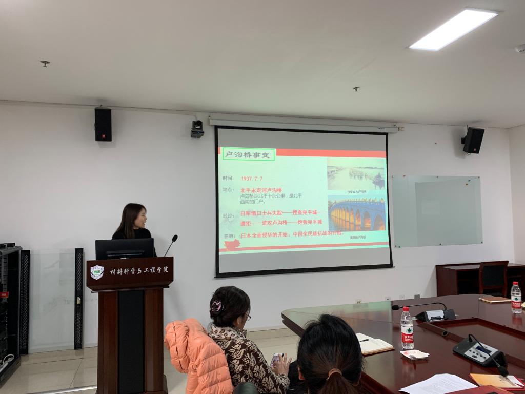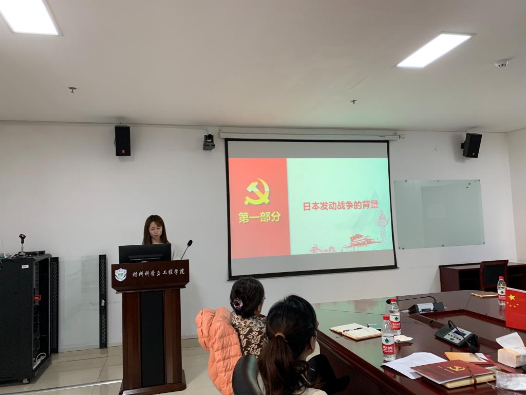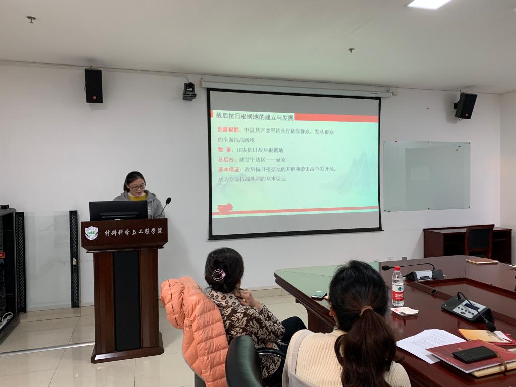会议议程第二项由党员同志代表带领全同志学习党史。何思瑶、吴聪、刘晓婷同志从日本发动战争的背景、中华民族抗战开端、抗日战争全面爆发、国共合作抗日、抗战胜利,日本投降五个方面,回忆中国14年抗战的艰路历程,并以中国抗战期间的艰辛阶段勉励大家不忘初心,牢记使命。李杰同志以“社会主义革命和建设时期大事件”为主题,回顾了从1949年中华人民共和国成立到1978年党的十一届三中全会召开的重大历史事件。以时间轴为线索,具体地分享了这一时期中国人民在中国共产党的领导下,实现了从新民主主义向社会主义的过渡,并在此基础上开始了社会主义建设道路的艰辛探索。