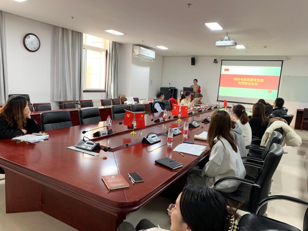 为推动党史学习教育走深走实,引导党员从入党申请、入党志愿中寻找入党初心,按照中共中央《关于加强党的政治建设的意见》中提出“坚持和完善重温入党誓词、党员过‘政治生日’”的要求,11月26日下午16点,院办与实验室党支部组织本支部党员于仲英楼第三会议室召开本月支部组织生活会议,主要包括党史学习教育与过政治生日两项议程,会议由支部书记吴文媛同志主持。