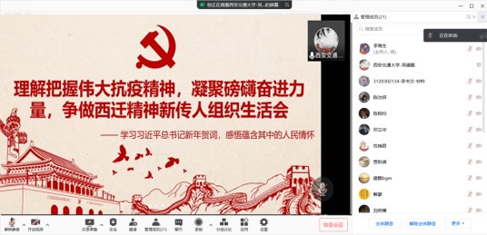 2022年1月17日,3003新葡的京集团S0023党支部召开了以“学习习近平总书记新年贺词,感悟蕴含其中的人民情怀”为主题的线上组织生活会议,S0023党支部党员及积极分子共计20人参加本次会议,会议由吴建鹏同志主持,3003新葡的京集团党委委员孙巧艳同志参会。