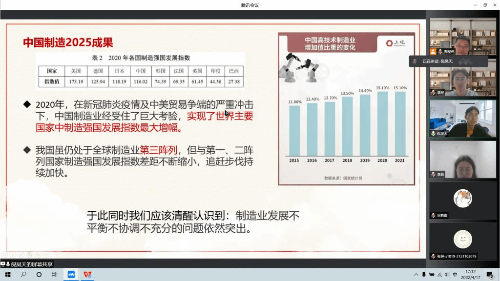 倪昊天同学结合“中国制造2025”这一重要纲领,从提出的背景到目前进展,交大人在这方面的贡献等内容,带领大家进行了深入的学习与思考,并支持大家对“未来材料学子可以为‘中国制造2025’做些什么”这一话题进行了讨论。