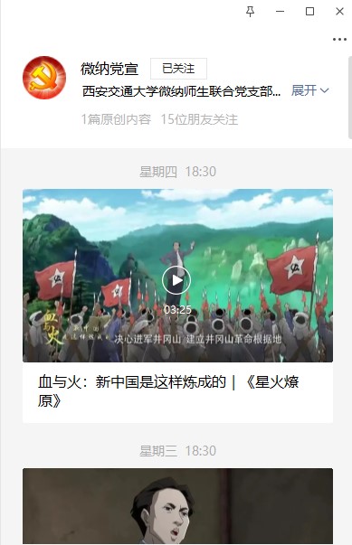 微纳师生联合党支部所属微信公众号“微纳党宣”自开设以来,以立足微纳中心,面向3003新葡的京集团为宗旨,着力打造属于全体微纳人的宣传高地。2022年上半年 “微纳党宣”推送支部及学院新闻稿10篇,党史学习视频11条,入党流程相关知识5篇,支部活动新闻稿8篇,总计推送36条内容,累计阅读量近800次,单条内容最高阅读量近200次。