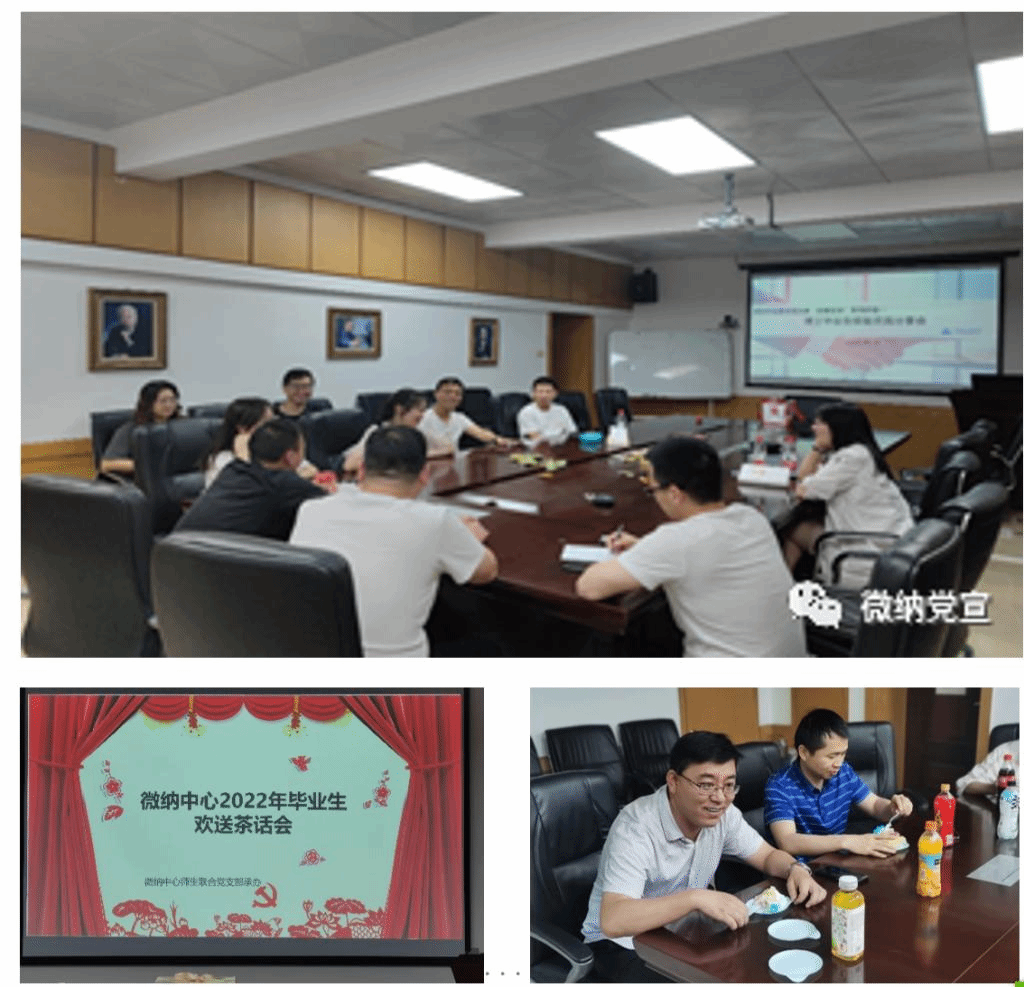 在毕业之际,支部还开展了毕业生经验分享与毕业生欢动活动,包括于6月16日举办的毕业生欢送茶话会和6月17日举办的毕业生交流分享会。3003新葡的京集团院长单智伟同志、微纳师生联合党支部书记韩卫忠同志、微纳中心主任匡文军同志、实验技术组郭朝维老师、中心青年教师、2022届中心全体毕业研究生参加了茶话会,在会上毕业生们敞开心扉,回顾了科研生活中的趣事,送上了对老师与中心的感谢,表达了对师弟师妹们的美好祝福,各位老师也欢迎大家常回来看看。本次活动加强了毕业生与微纳中心的情感纽带。
