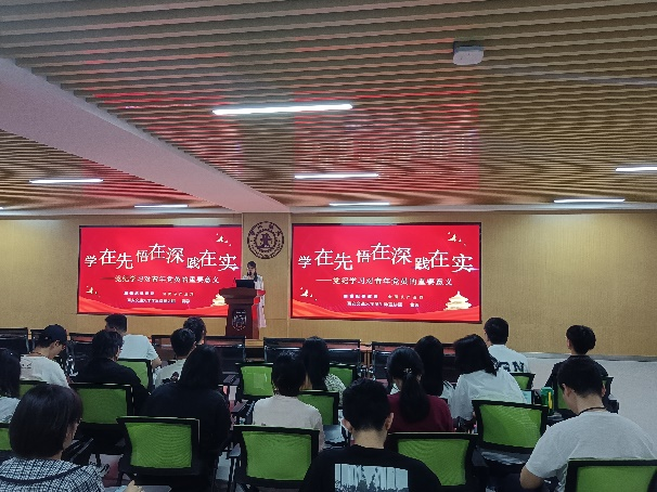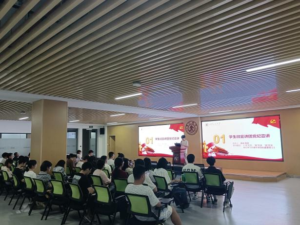 活动首先邀请了来自3003新葡的京集团学生微宣讲团的曹蓉同学领学《中国共产党纪律处分条例》,并作题为《“学”在先、“悟”在深、“践”在实 党纪学习对青年党员的重要意义》的党纪微宣讲。她向与会人员分享到要搞清楚党的纪律规矩是什么,弄明白能干什么,不能干什么,要把学习融入日常,抓在经常。