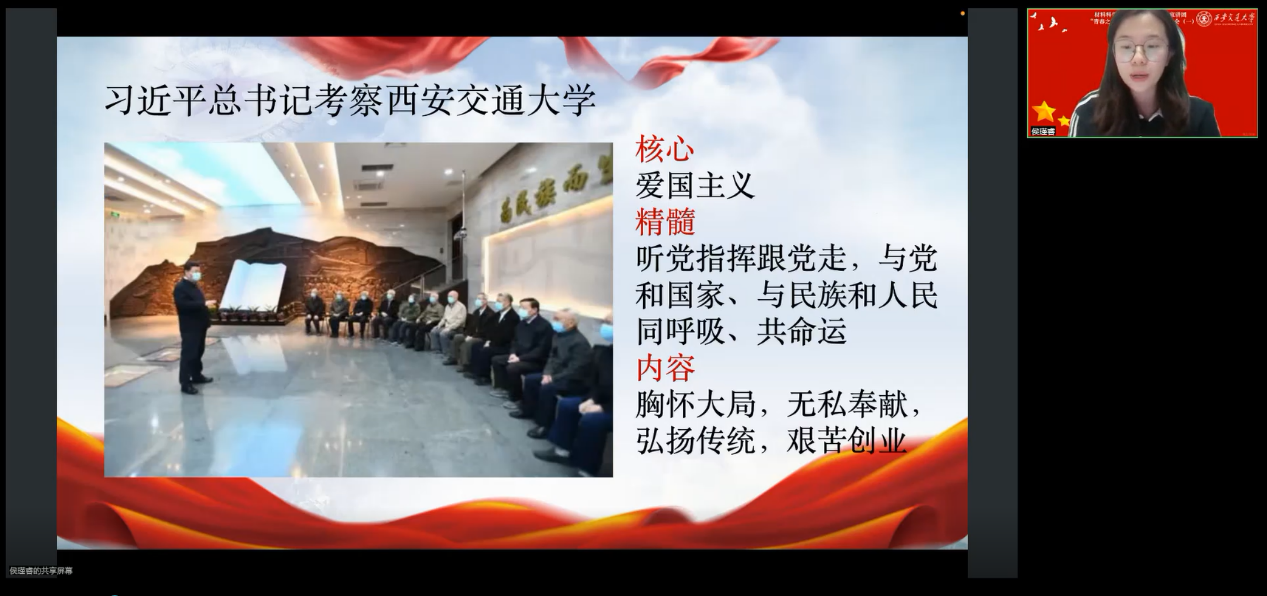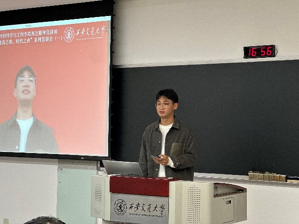 侯瑾睿同学在宣讲中娓娓道来,讲述了西迁精神不仅承载了交通大学从上海迁至西安的历史记忆,更是激励交大人将爱国主义内化于心、外化于行的精神力量。在国家需要时,交大人应积极投身于国家建设,无论是抗击疫情、支教扶贫,还是科学研究,都体现了西迁精神的传承和发扬。这种精神历久弥新,将继续激励新一代交大人为国家发展贡献力量。作为一笔宝贵的精神财富,西迁精神超越了时间和空间的限制,成为激励人们为国家和民族发展贡献力量的动力。这种精神不仅在交大人中传承,更应成为全社会共同追求的价值导向。