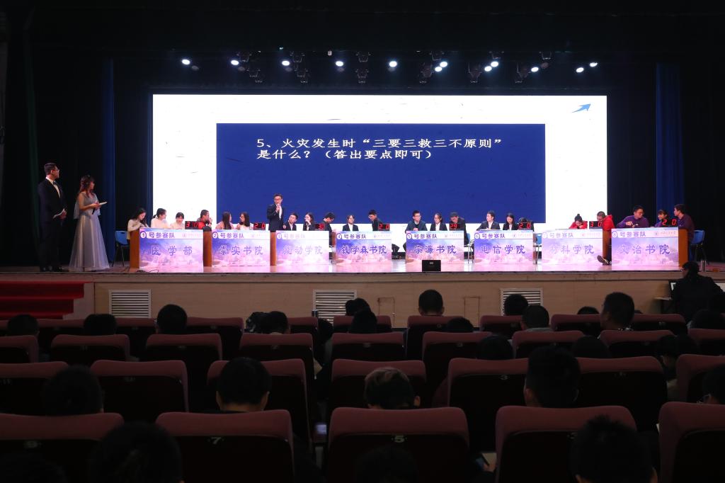 11月14日下午,第28届“119”消防知识竞赛决赛在宪梓堂举行,市公安局文保支队崔新虎警官、碑林区公安分局兴庆路派出所驻校民警杨彦梨警官、学校相关部门负责同志等出席竞赛现场。