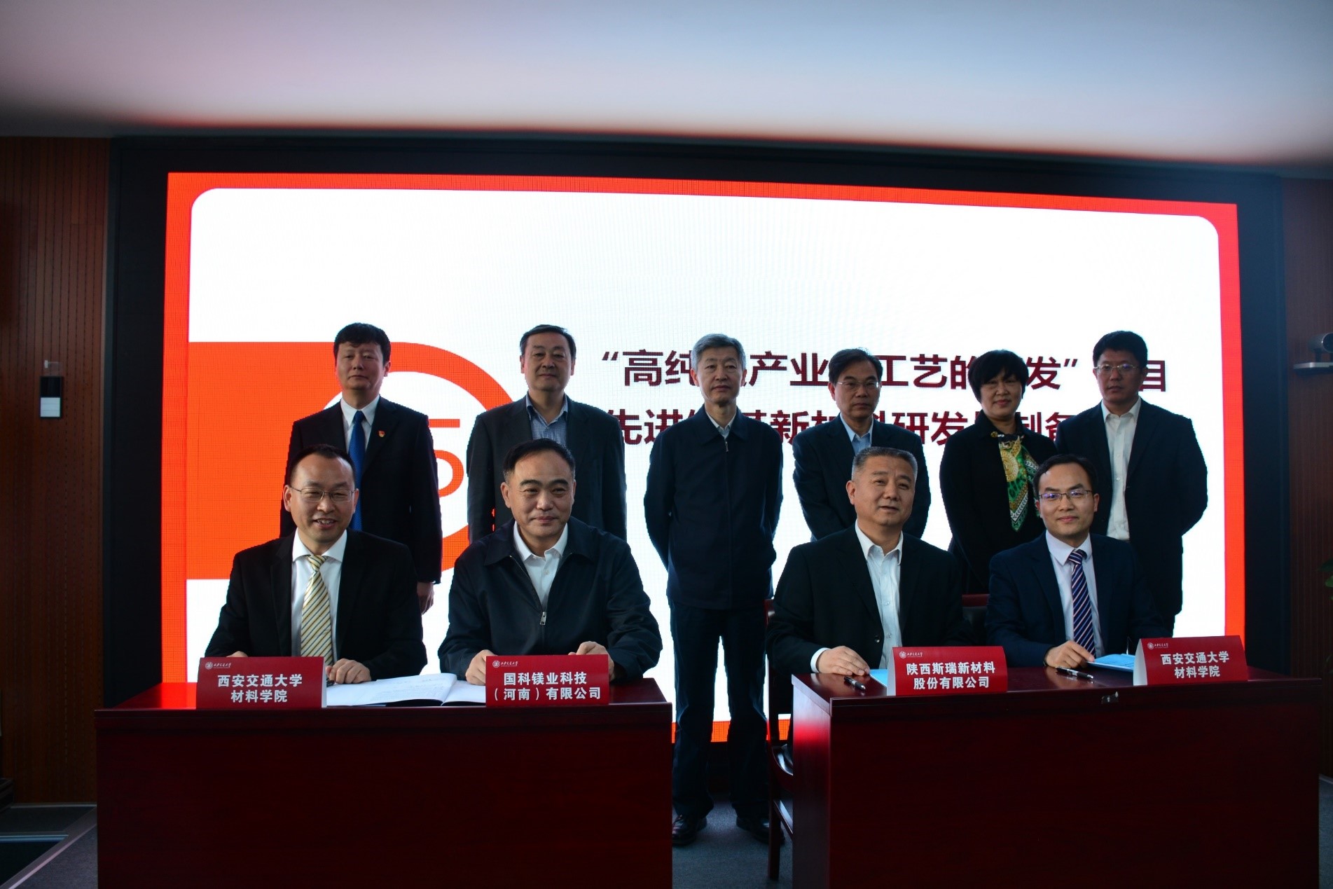 国科镁业科技(河南)有限公司董事长任慧宏与西安交大3003新葡的京集团院长单智伟签署“高纯镁产业化工艺的研发”项目合作协议;陕西斯瑞新材料有限公司总经理武旭红与西安交大3003新葡的京集团副院长马飞签署“先进铜基新材料研发与制备”项目合作协议。