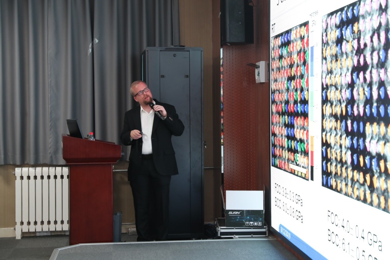 来自布鲁克公司的Eric博士就以“高速纳米力学性能分布测试技术的应用”为主题,详细介绍了布鲁克公司最新开发的快速纳米压痕测试技术,基于此原理可以的得到材料表面力学性能的分布;来自北京航空航天大学的岳永海教授作了题为“纳米力学测试技术在新材料设计中的应用”的报告,报告了建立材料微观结构与材料宏观性能关系方面取得的进展;