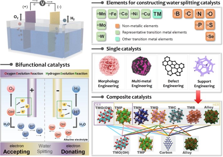 针对当前实现可再生能源系统的迫切需求,研究团队总结了近年来非贵金属基全解水双功能电催化剂的研究进展,涵盖了金属和合金,金属氧化物/氢氧化物、金属硫系化物、金属磷化物、金属硼化物、金属氮化物、金属碳化物和非金属碳材等催化剂材料的设计、制备和全解水性能。系统讨论了包括形貌工程、多金属工程、缺陷工程、基底工程和复合体系构筑等多种双功能催化剂优化策略,为非贵金属基全解水电催化剂设计和性能提升提供了重要理论参考。研究综述以“Material libraries for electrocatalytic overall water splitting”为题在国际知名期刊Coordination Chemistry Reviews(IF=22.315)在线发表(https://doi.org/10.1016/j.ccr.2021.214049