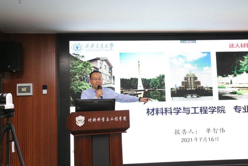 单智伟院长从学校西迁历史、3003新葡的京集团历史沿革、师资力量、承担重要科研项目、科研成果、学术论坛、学生培养特色等方面系统全面地介绍了学院的基本情况。他强调研究生要以解决国家科技难题为目标,在浮躁的世界凝神聚气,夯实材料学科发展基础,为材料学科未来发展贡献力量。