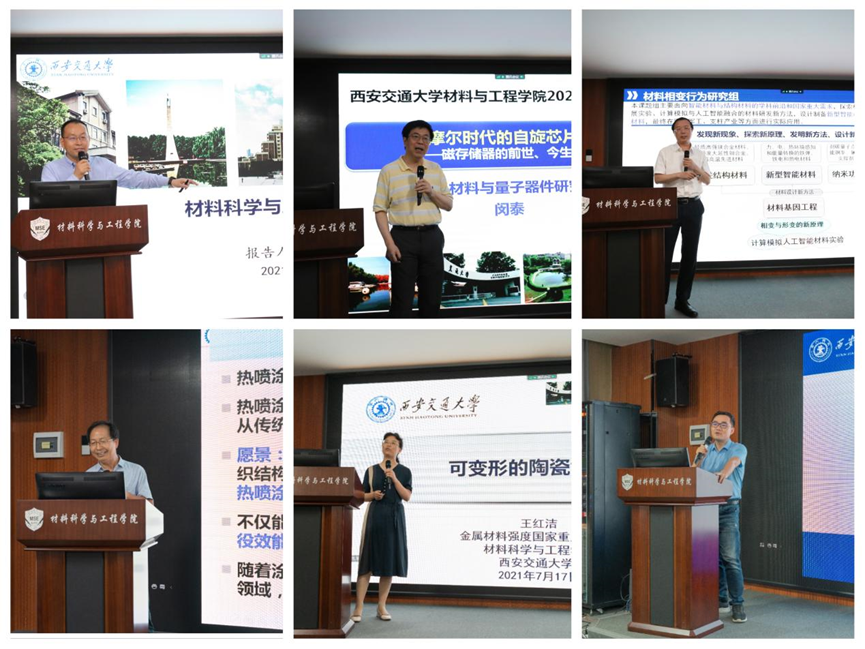 单智伟、闵泰、丁向东、李长久、王红洁、马伟等六位教授结合自身的研究方向,为学生们带来了精彩的学术报告,带领同学们了解材料科技前沿、领略材料魅力。之后,九个研究系室负责老师从研究室的历史发展、总体目标、研究方向、师资队伍、科研成果、人才培养等方面进行了系统的介绍。