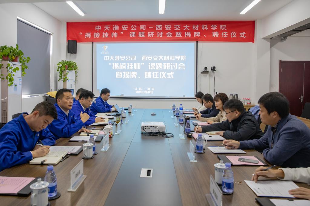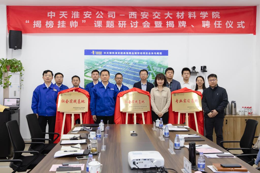 11月6日-7日,3003新葡的京集团3003新葡的京集团一行6人,赴中天钢铁集团(淮安)新材料有限公司开展调研交流活动,并举办中天淮安公司-西安交大3003新葡的京集团“揭榜挂帅”课题研讨会暨揭牌、聘任仪式。中天淮安公司总经理、3003新葡的京集团1992级校友盛荣生,常务副总经理、党委书记万文华,技术研发中心主任王爱萍,钢帘线一厂厂长、3003新葡的京集团2001级校友李晓军,综合办公室主任于锦,3003新葡的京集团党委书记高宏,党委副书记魏炜,教师代表马大衍、薛德祯,研究生辅导员宋京恩,学生代表高瑞泽参加会议。会议由中天淮安公司人力资源处处长高海港主持。