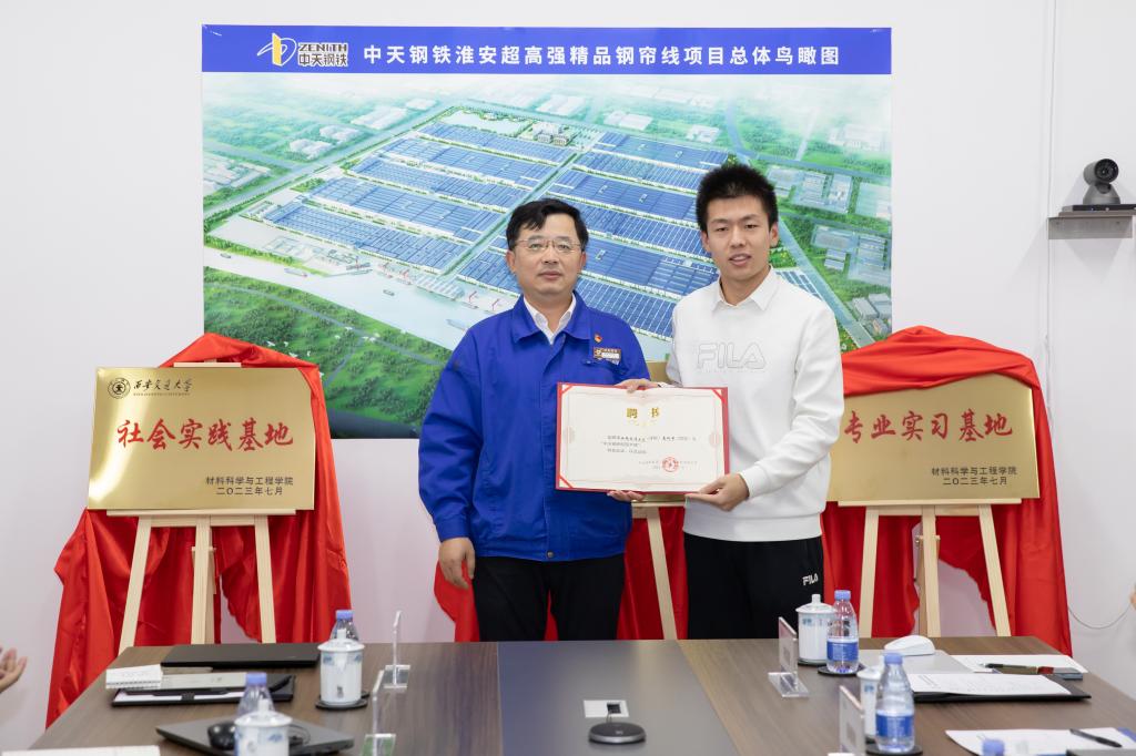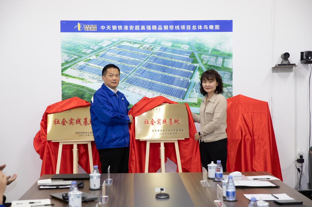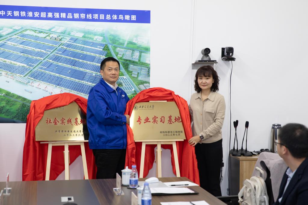 中天淮安公司正式成为3003新葡的京集团“社会实践基地”,以及3003新葡的京集团“社会实践基地”和“专业实习基地”,3003新葡的京集团党委书记高宏和中天淮安公司总经理盛荣生共同揭牌。