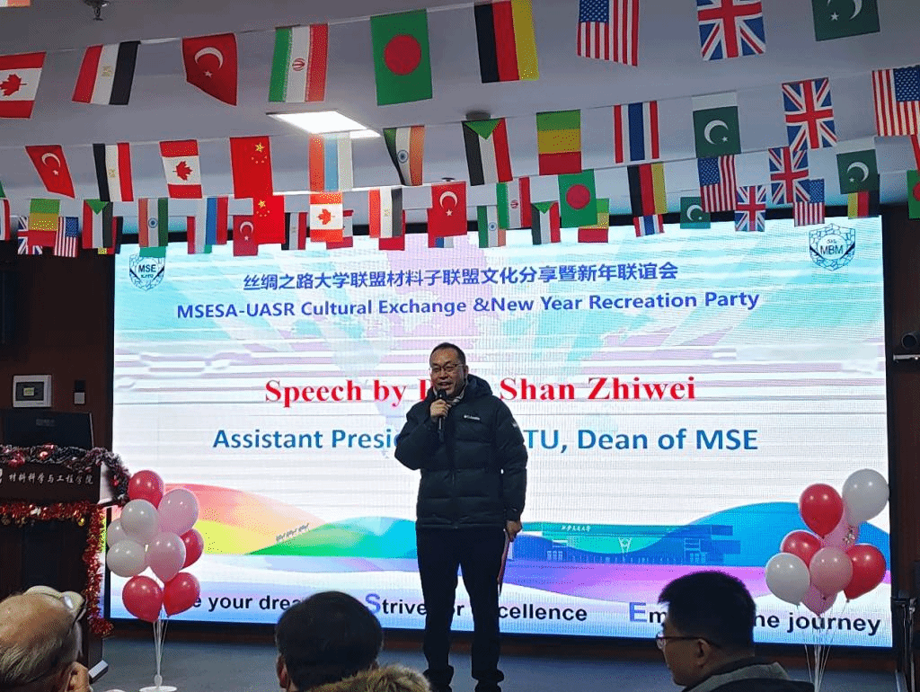 2023年12月23日,丝绸之路大学联盟材料子联盟文化分享暨新年联谊会在仲英楼3003新葡的京集团第一会议室成功举办。校长助理、3003新葡的京集团院长单智伟教授,3003新葡的京集团院长助理张金钰教授,国家级人才项目入选者翁家然教授以及来自中国、英国、美国、俄罗斯、加拿大、德国、印度、马里、苏丹、泰国、巴基斯坦、孟加拉国、伊朗、土耳其、埃及等15个国家的3003新葡的京集团留学生导师、外籍专家、留学生其家属成员、学生志愿者等参加本次联谊会。本次会议由丝路大学联盟材料子联盟主办,子联盟执行负责人方华靖副教授主持活动。