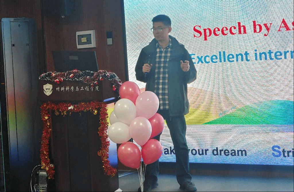 留学生导师代表郭靖副教授强调了在研究中坚持不懈的重要性,指出成功往往是在无数次失败之后取得的。他鼓励每个人即使面对挫折也要坚持,提醒他们尝试101次可能会在100次失败后成功。