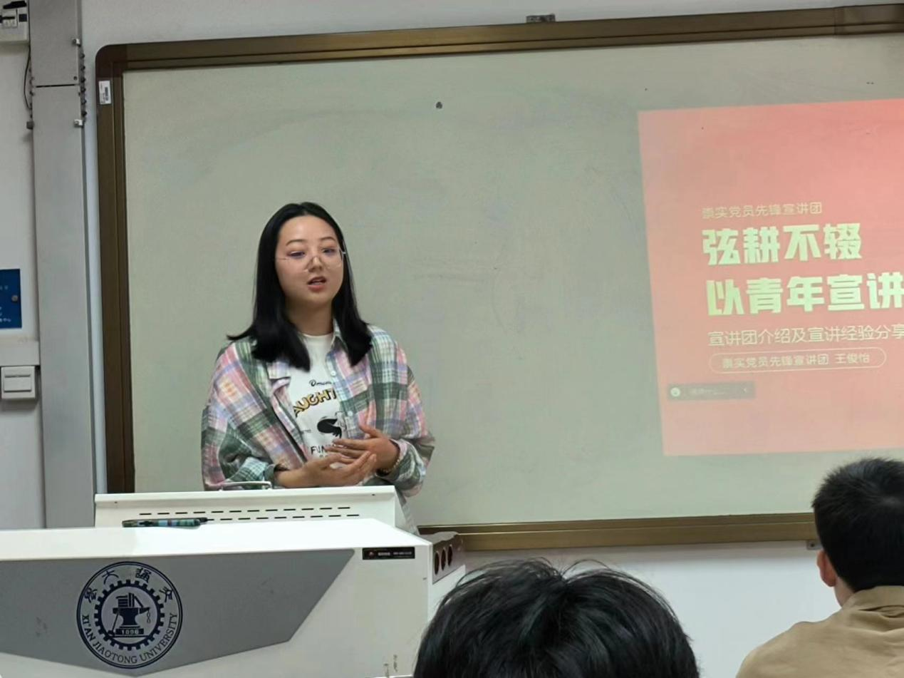 王俊怡介绍了崇实书院党员先锋宣讲团的架构及开展的如“党员读书周”等特色品牌活动,崇实书院党员先锋宣讲团以讲好中国故事、西迁故事和书院故事为主线,学深悟透党的创新理论,深入党团支部、学生组织、中小学校、企事业单位多次开展宣讲活动,推动党的创新理论“飞入广大师生间”。