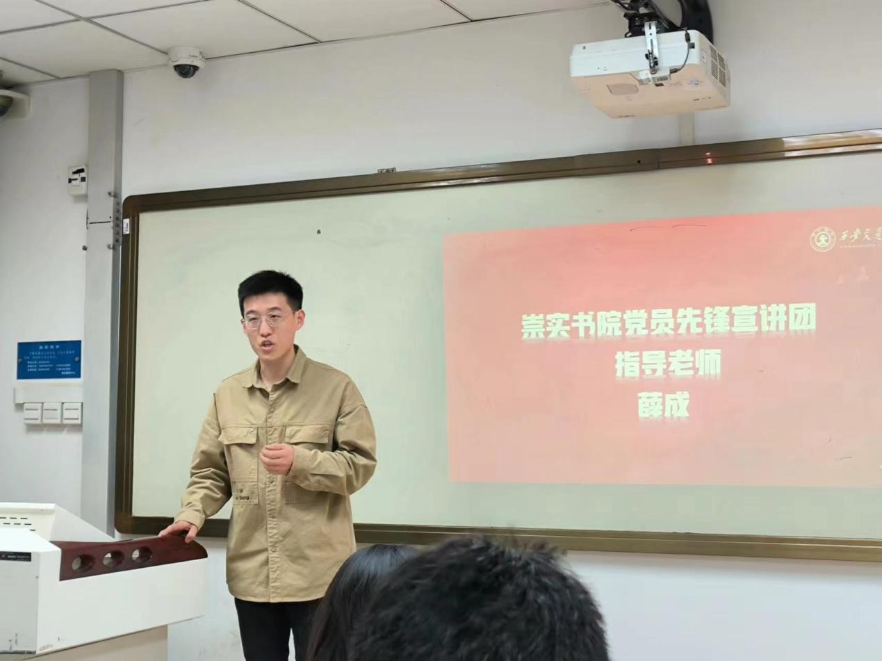崇实书院党员先锋宣讲团李长奇带来《源浚者流长,根深者叶茂》的主题宣讲。李长奇通过寿阳赵清乡村文化记忆展示馆、榆社县“北寨食醋传统手工酿造技艺”非遗文化传承的故事作为案例,生动地讲述了清明节与乡土文化的关系,以及乡村文化振兴的重要性。他强调,我们要以习近平文化思想为指引,保护好、传承好、利用好乡村文化,让文化之河更加通畅、顺达,让文明之流绵延不绝、川流不息。