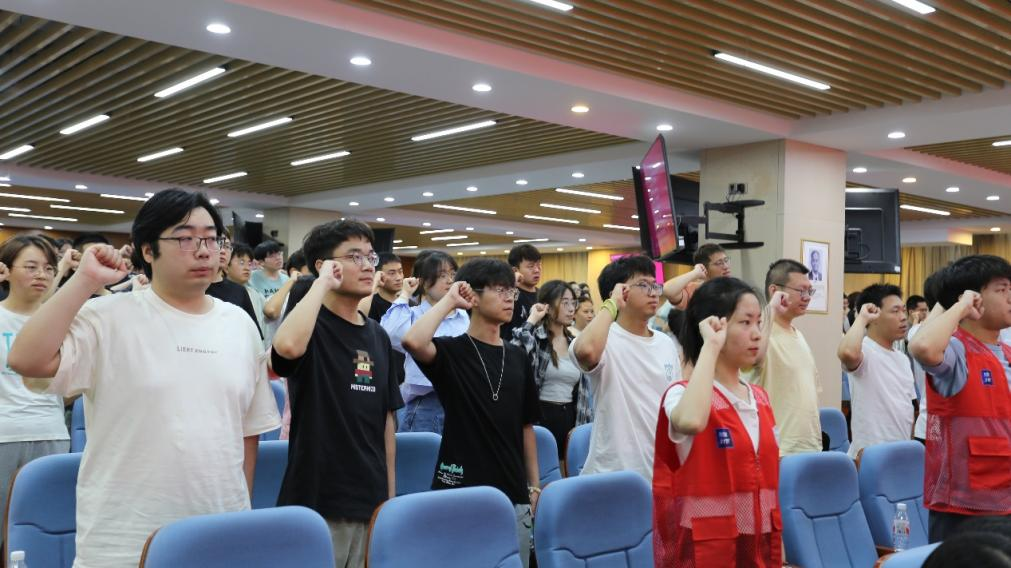 随后,张娜同学带领志愿者们进行宣誓,大家将不忘初心,牢记使命,以实际行动服务师生之所需。