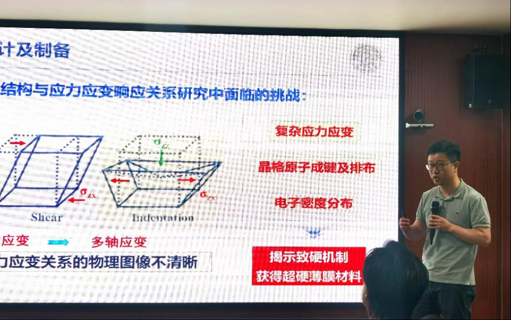 来自吉林大学的张侃教授以“超硬/硬质薄膜材料的强韧化设计及制备”为题目进行了精彩的报告。报告首先讲述了超硬/硬质薄膜的设计思路,建立了材料的电负性和内层电子数等组合描述符与TMLE的力学性质间的关系;然后基于微纳序构设计,构建了三维共格核壳结构、类竹状结构和高熵合金次晶等新型结构,从而破解了硬质薄膜材料强韧相消的经典难题。最后介绍了所制备的TMLE基薄膜在多环境下的摩擦性能,为超滑领域开发了新体系。