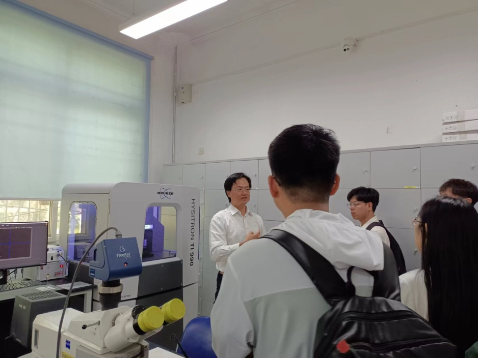 最后与会者参观了微纳中心实验室。魏伯仁博士为大家演示了TI990的操作方法,展示了测试结果。微纳中心老师也介绍了其他纳米力学设备如PI89原位扫描力学测试平台及PI95原位透射电镜样品杆的使用及相关研究成果。