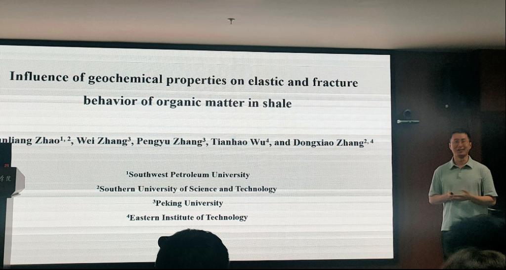 西南石油大学的赵俊良副教授研究了“地球化学性质对页岩有机质弹性及断裂行为的影响”。报告首先讲述了页岩微观力学研究对页岩气开发的重要意义,随后介绍了通过原位SEM测试方法,研究了地球化学性质如有机质的类型对页岩弹性行为和断裂特性具有显著影响,这有助于对页岩的力学性能进行预测。