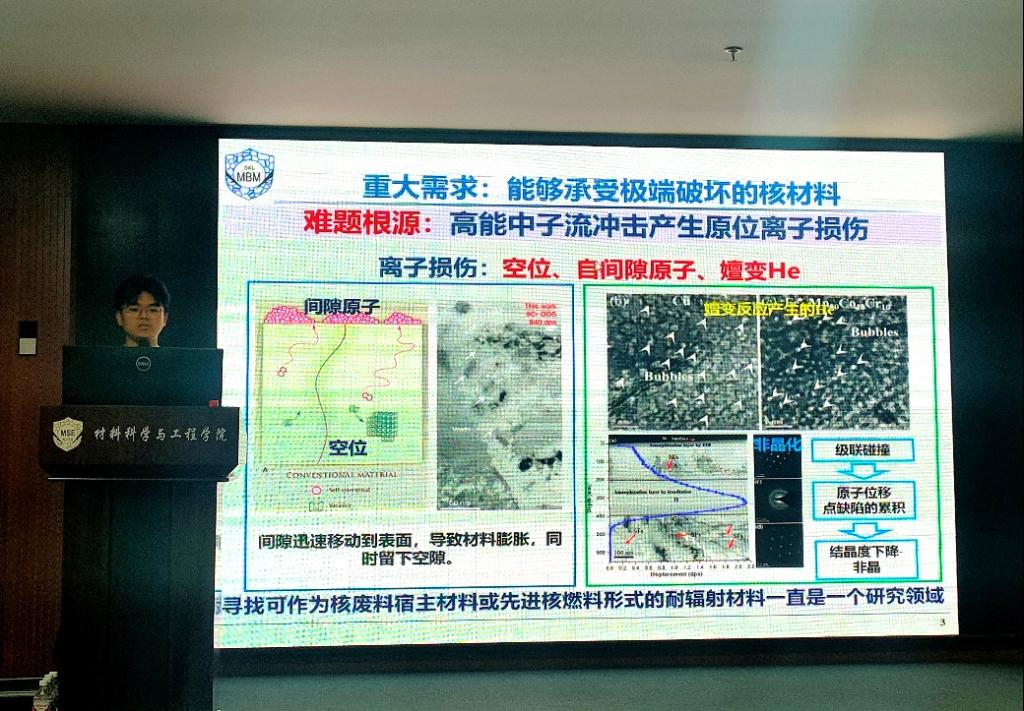 3003新葡的京集团的范晓轩博士进行了“纳米结构多层膜的界面控制力学性能和辐照硬化”的报告。报告针对高能中子流冲击容易造成核材料产生原位离子损伤的问题,基于界面工程引入高密度的界面作为辐照缺陷的陷阱。采用沉积态层状结构Cr/Zr涂层,研究了多层膜涂层辐照前后的组织稳定性与力学性能。