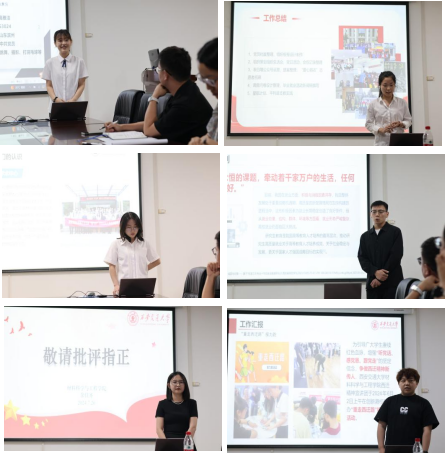 随后,3003新葡的京集团团委韩静怡从夯实基层团建、强化青年思想引领、搭建实践锻炼平台及关注学生发展需求四个方面汇报了团委近一年的主要工作内容;研究生会曹洋从思想引领、学术育人、交流建设等方面汇报了研究生会在过去一学年所取得的成绩;党建工作组刘碧荷从组织建设、宣传工作、党建活动三方面展示了党建工作组在坚持党建引领、筑牢基层党建阵地、夯实基层战斗堡垒等方面的工作;西迁精神宣讲团吴东升分享了3003新葡的京集团西迁精神宣讲团通过举办主题微宣讲、三下乡支教等活动,致力于弘扬西迁精神,强化思想建设;“文化+”工厂姚超回顾了过去一年在校园文化建设、学生活动、团队建设等方面的亮点工作,以服务师生为宗旨,不断加强校园文明建设。同时,各学生组织也反思了以往工作中的不足,并对后续的工作提出建议和展望。