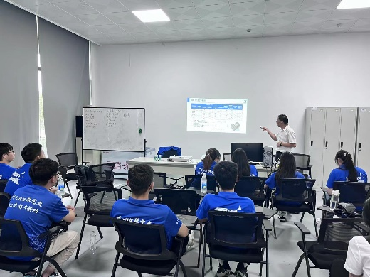 在后续的实践活动中,中天钢铁淮安公司技术中心副主任、西安交大3003新葡的京集团2001级校友李晓军向大家介绍了半成品生产工艺流程及其相关原理;工程师孙琳介绍了湿拉工艺流程及其相关原理;技术中心副主任刘兴华介绍了钢帘线工序分类、产品性能检测方法和智能化生产设备及其原理等相关内容。通过专业讲解,实践团队更加深入地了解了钢帘线产品,学以致用、知行合一,在接下来参观生产车间的过程中能够更加有效地将理论知识与实际生产过程相结合。