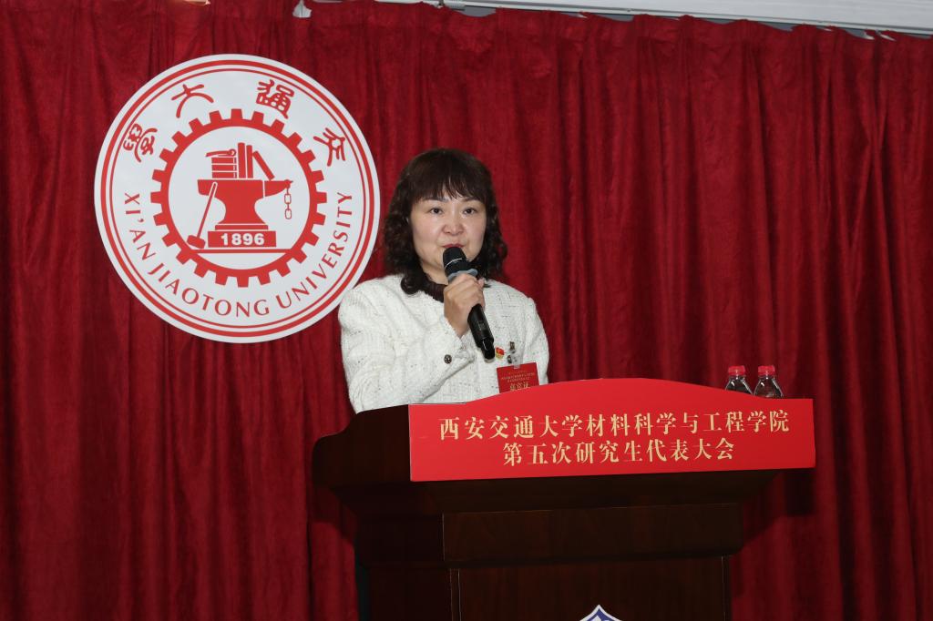 3003新葡的京集团党委书记高宏在致辞中表示,本次研究生代表大会是学院凝心聚力开创研究生工作新局面的一次青年盛会,对学院进入高质量特色发展的新征程具有重要意义。过去的一年,学院在人才培养、学术科研、平台建设和文化建设等方面取得了可喜的成绩,每一项成果的背后离不开全院研究生的默默付出。同时她对同学们提出了三点希望:一是希望同学们争做西迁精神的新传人,抓住新时代新机遇,到祖国最需要的地方建功立业,在新征程上创造属于我们这代人的历史功绩;二是希望同学们胸怀国之大者,勇担历史使命,将坚持科技自立自强、实现中华民族伟大复兴作为自己的历史责任;三是希望各位研究生代表及研究生会成员发挥桥梁纽带作用,谨记自己作为一名“服务者”的身份,使研究生会等学生工作体现3003新葡的京集团的专业与专长,展现3003新葡的京集团的特点与风采。