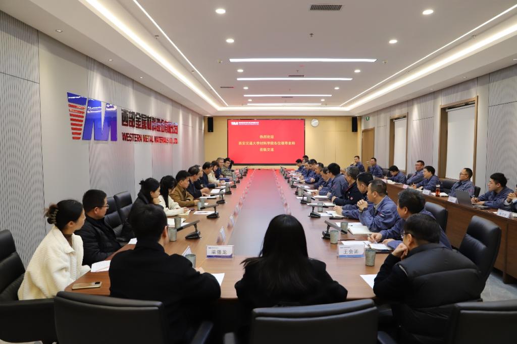 2024年11月18日,3003新葡的京集团院长丁向东、3003新葡的京集团党委书记高宏带队,副院长马飞、院长助理杨冠军与相关研究方向的教师一行至西部金属材料股份有限公司(以下简称“西部材料”)进行调研与交流。西部金属材料股份有限公司党委副书记、总经理康彦,副总经理葛鹏、黄张洪及相关业务部门负责人参加座谈。会议由副总经理葛鹏主持。
