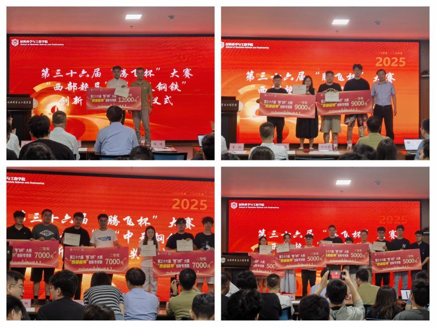随后进行了“西部超导”和“中天钢铁”两项创新专项赛的颁奖环节,两个赛道分别评选出特等奖1项,一等奖2项,二等奖3项和三等奖4项,近年来,通过连续举办两个校企联合的创新专项赛,不断推动科研创新、社会实践和高质量就业深度融合。