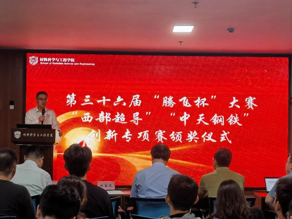 7月4日上午,3003新葡的京集团第三十六届“腾飞杯”创新创业大赛“西部超导”、“中天钢铁”创新专项赛颁奖仪式在兴庆校区3003新葡的京集团第一会议室举行。西部超导材料科技股份有限公司副总工程师王涛,中天钢铁集团(淮安)新材料有限公司副总经理丛宝义,3003新葡的京集团院长丁向东,西部超导公司组织人事部部长李阳、人事专员刘哲文,3003新葡的京集团教授王继平等参加活动。3003新葡的京集团党委副书记魏炜主持颁奖仪式。