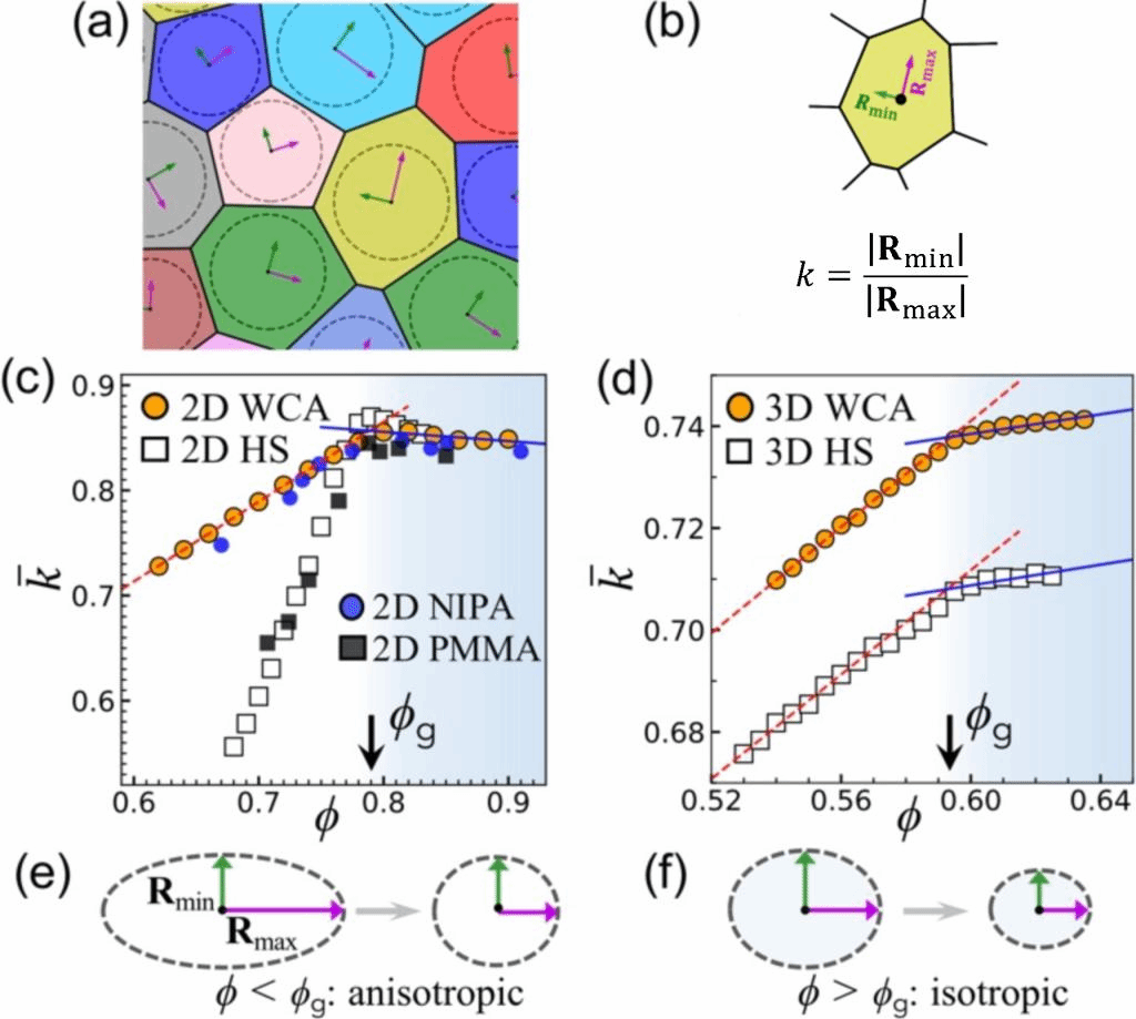 图1. 基于Voronoi构造的各项异性参量k揭示玻璃转变。