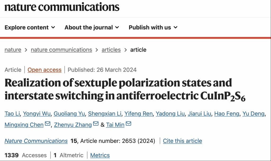 T. Li, Y. Wu, G. Yu, et al. Realization of sextuple polarization states and interstate switching in antiferroelectric CuInP2S6. Nat. Commun. 15, 2653 (2024).