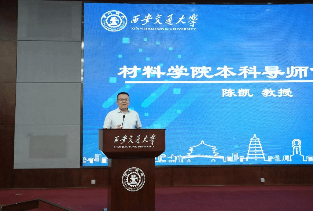 陈凯代表本科生导师发言,他结合自己12年的学生工作经验,讲述了指导学生过程中的典型案例,再次给同学们敲响警钟,中学辉煌已过,大学的辉煌,仍需付出100%的努力,才能实现。他希望大家要“抛弃幻想、勤奋守纪;摆正心态、调整节奏;发展兴趣、善于表达”,认真规划自己的学业和生活,不断追求卓越。