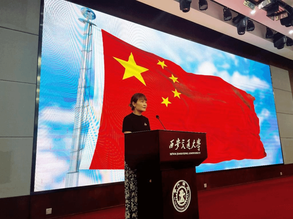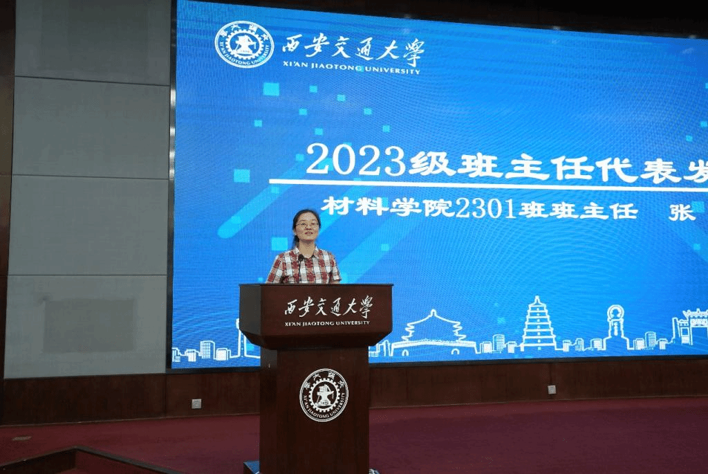 张兰作为新生班主任代表发言。她希望大家要立足新起点,设定新目标,面对重新洗牌的大学生活,大家要积极面对挫折和挑战,提升抗压受挫能力;要努力学习,千万不要玩游戏,在虚无的世界里华山论剑没有任何意义;要加强体育锻炼,健康的体魄是基础,希望大家在交大度过身心愉悦的大学生活。