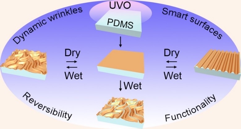 在自然界中,可逆的表面结构往往赋予动植物动态调节自身颜色和透光性的能力,是一种高效伪装的方式与策略。受此启发,研究人员通常采用光刻技术来制备可逆可调的表面结构以实现所需的功能性应用。近年来,由于对于环境刺激 (温度、湿度、光、磁等) 的可逆响应,褶皱图案开辟了实现动态表面的新途径,在可逆润湿、黏附、摩擦、光学等智能表面和器件具有广泛的应用前景。尽管如此,如何在单一膜/基材料体系简单有效地制备可控褶皱...